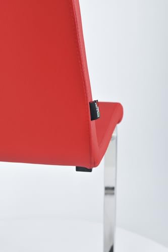 Tommychairs – 4er Set Freischwinger-Stühle BERLIN mit hochfestem rechteckigem Freischwingergestell aus Stahl und Sitzflaeche aus mehrschichtigem Holz gepolstert und mit rotem Kunstleder bezogen