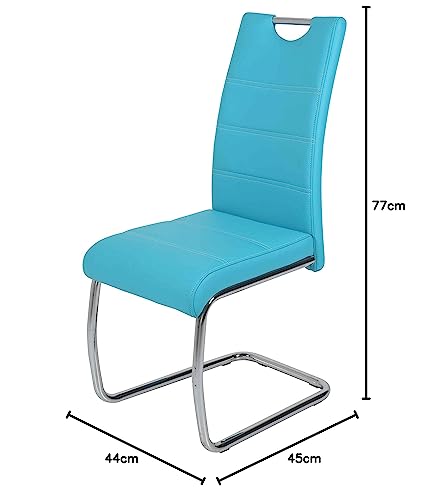2er Set Schwingstuhl Flora, Kunstleder Petrol, Griffmulde, Metallgestell verchromt, 42x57x98 cm