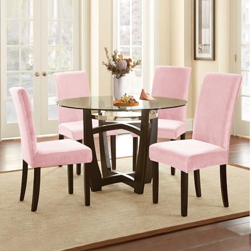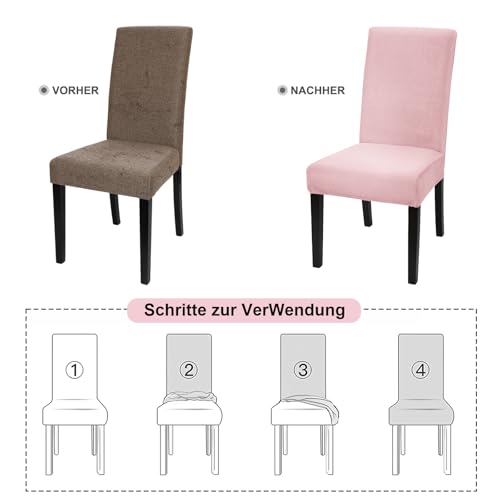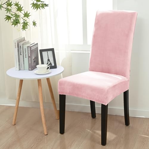 Alishomtll Stretch Samt Stuhlhussen 4er Set Velvet/Velour Stuhlbezug Schwingstuhl Elastische Hussen Waschbarer Stühle Schutz für Küche Restaurant Hotel Bankett Hochzeit (Rosa, 4 Stück)