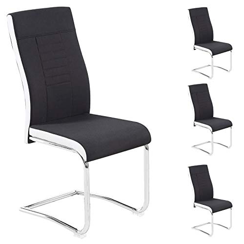 CARO-Möbel 4er Set Esszimmerstuhl ALBA Küchenstuhl Schwingstuhl, Stoffbezug in schwarz und weiß, Metallgestell in Chrom