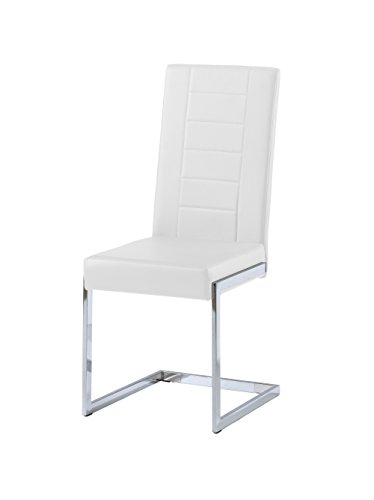 - Lieferumfang: 1 x 4er Set Stühle / 4 Freischwinger aus Kunstleder mit edel verchromtem Flachstahlgestell / 61x43x99cm (LxBxH) / Weiß
