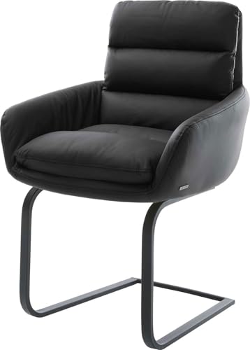 DELIFE Schwingstuhl Abelia-Flex mit Armlehnen Freischwinger flach Schwarz Echt-Leder Schwarz