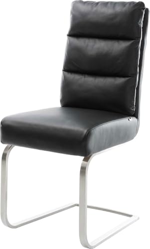 DELIFE Schwingstuhl Pela-Flex Freischwinger flach Edelstahl Echt-Leder Schwarz Taschenfederkern