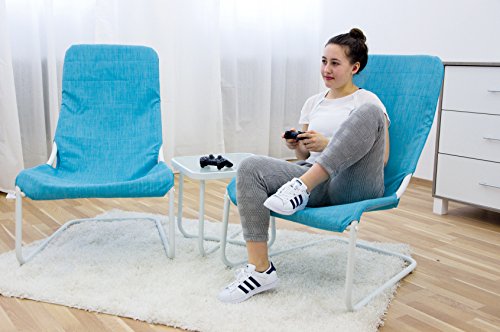 Infos für alle SchwingstühleHochwertige Möbel für Jugendzimmer, ideal für Zocker- oder Chillzonen; Set besteht aus 2 Schwingstühlen und einem Tisch; Stühle haben eine Breite von 67 cm und eine Höhe von 100 cm; Tischmaße: Länge 45 cm, Breite 45 cm, Höhe 42 cm; Gestell aus pulverbeschichtetem Stahl mit pflegeleichten Textilien.
