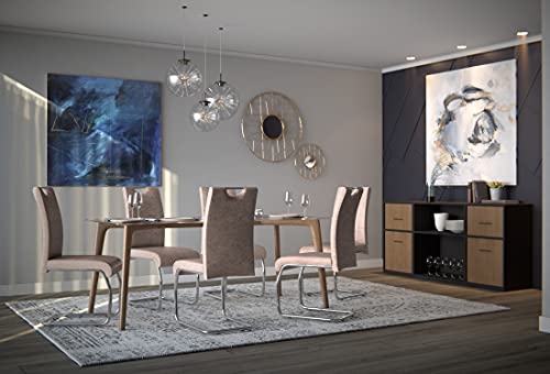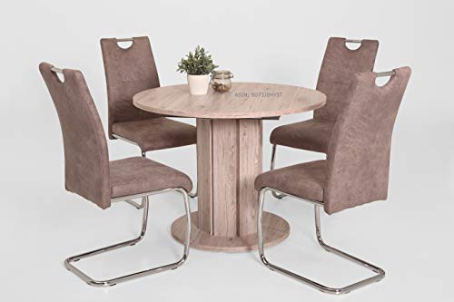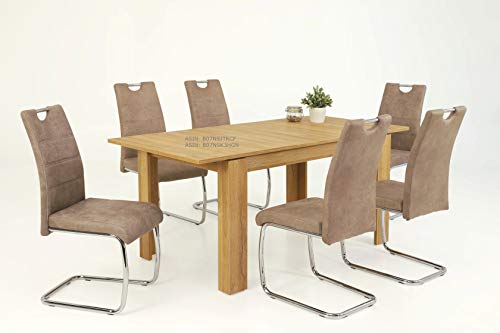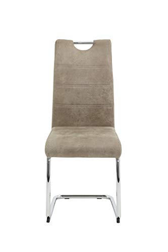 Hela Tische, 2er Set Schwingstuhl, Küchenstuhl Flora II, Microfaser Vintage Beige, Rundrohrgestell verchromt, Lehne mit Griff