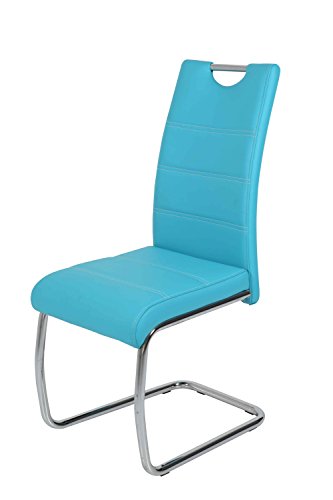 Hela Tische, 2er Set Schwingstuhl, Küchenstuhl Flora, Kunstleder Grün, Griffmulde, Metallgestell verchromt, 42x57x98 cm