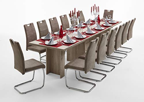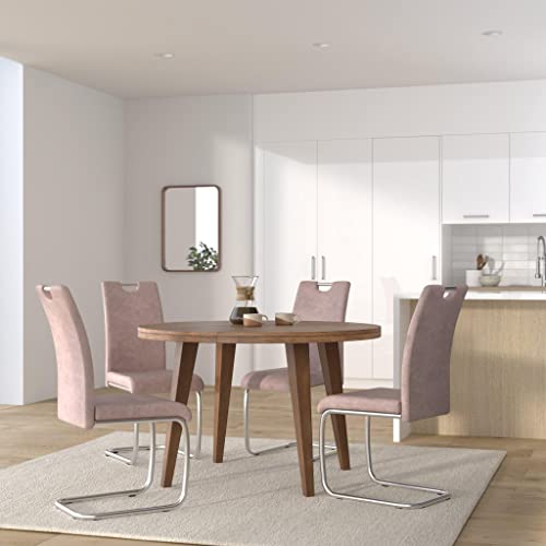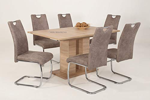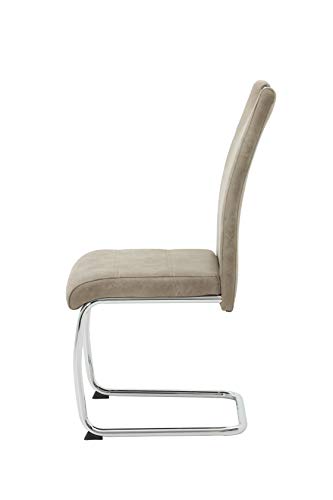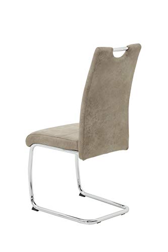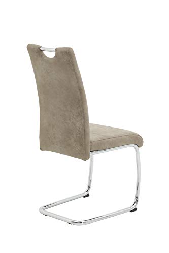 Hela Tische, 4er Set Schwingstuhl, Küchenstuhl Flora II, Microfaser Vintage Beige, Rundrohrgestell verchromt, Lehne mit Griff