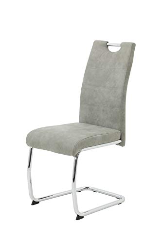 Hela Tische, 4er Set Schwingstuhl, Küchenstuhl Flora II, Microfaser Vintage Grau, Rundrohrgestell verchromt, Lehne mit Griff