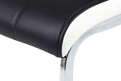 Hela Tische, 4er Set Schwingstuhl Tabea, Kunstleder Schwarz-Weiß, Griffloch, Metallgestell Chrom, 43 x 61 x 99 cm