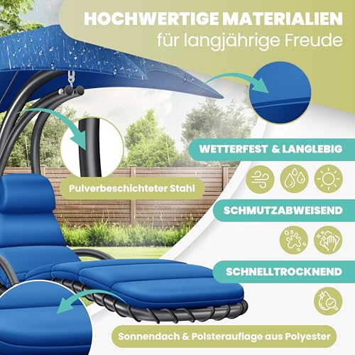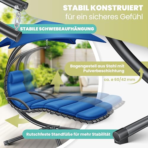 RELAX: Diese schicke Schwebeliege ist dank des schönen und modernen Designs ein absolutes Highlight in Ihrem Garten, auf der Terrasse oder auf dem Balkon und dient als perfekter Ort zur Entspannung., SCHWEBEN: Mit der KESSER Schwingliege der Entspannung entgegen schweben. An einem Bogengestell aus…