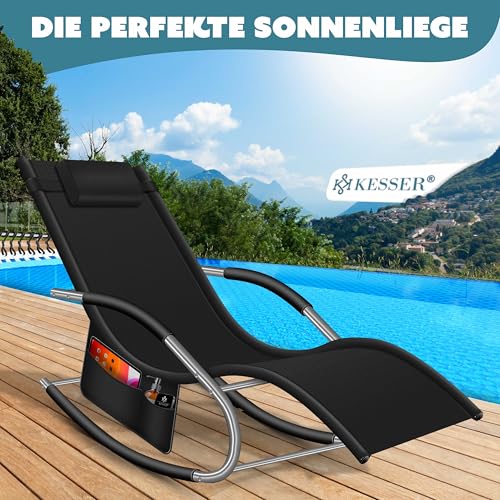 KESSER® Sonnenliege Relaxliege Schwungliege | Gartenliege | Gartenstuhl | Liegestuhl | Schaukelsessel | ergonomische Relaxsessel | Kopfkissen | wetterfest | 150 kg Belastung | Schwarz