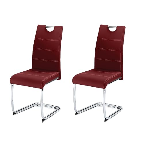 KHG 2er Set Esszimmerstühle Schwingstuhl Polsterstuhl Küchenstuhl Kunstleder Rot – Design Stuhl Sitzhöhe 48 cm – Freischwinger mit integriertem Griff, für Büro Küche Wohnzimmer