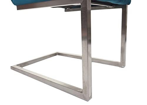 Mendler 2er-Set Freischwinger HWC-L14, Besucherstuhl Konferenzstuhl Stuhl, Samt Edelstahl gebürstet – türkis-blau