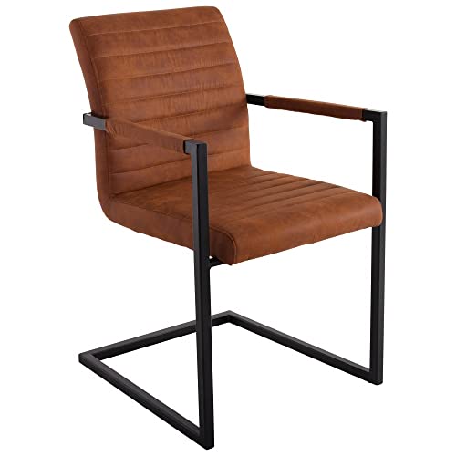 - DESIGN & HAPTIK: Raburg Esszimmerstuhl LUIS im exklusiven, zeitlosen & modernen Industrial Design in VINTAGE-BRAUN in Leder-Optik, klare Linienführung & dezente Kontrastnähte mit XL Schwing-Gestell aus massivem Stahl in SEIDEN-SCHWARZ