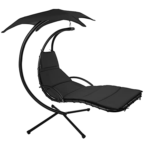 TecTake 800699 Hängeliege mit Gestell und Sonnendach mit UV Schutz, 195 x 118 x 202 cm, ergonomisch geformte Liegefläche, inkl. Sitz- und Kopfpolster – Diverse Farben – (Schwarz | Nr. 403074)