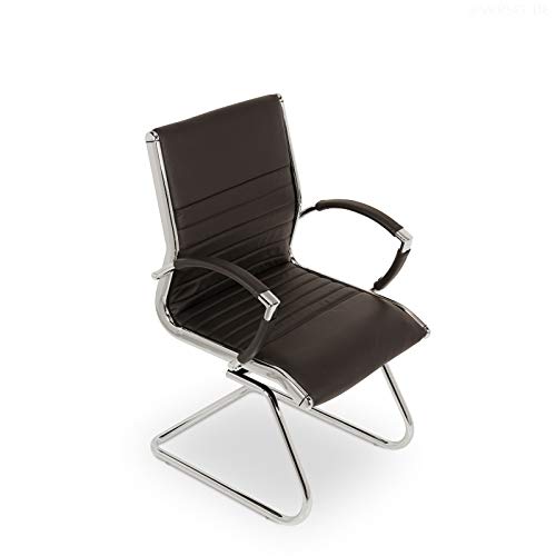 VERSEE Design Besucherstuhl Montreal – Echt-Leder – braun – Konferenzstuhl, Freischwinger, Schwingstuhl, Meetingstuhl, Besprechungsstuhl, Bürostuhl, mit Armlehnen, 150 kg belastbarkeit
