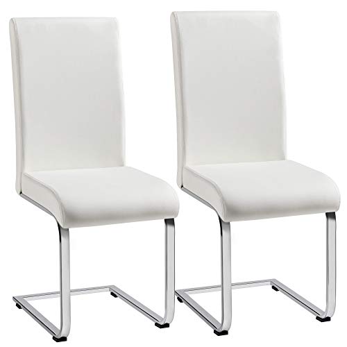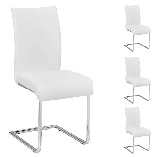 - Modernes Esszimmerstühle 2-er Set mit Echtlederbezug, 100 % Rinderleder-Spaltleder in Weiß