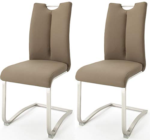 - Modernes Esszimmerstühle 2-er Set mit Echtlederbezug, 100 % Rinderleder-Spaltleder in cappuccino